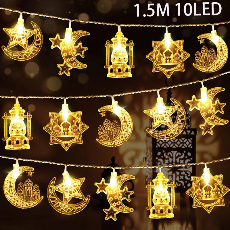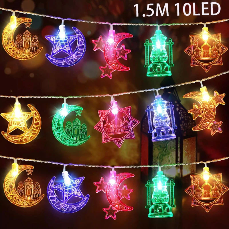 Add a magical glow to your festive celebrations with the meidding Eid Mubarak Moon & Star LED String Lights. Crafted from durable, lightweight plastic, these battery-operated lights feature charming moon, star, and architectural shapes, creating a warm and inviting atmosphere for Eid, Ramadan, or any special occasion. Their soft illumination brings a cozy, celebratory ambiance to living rooms, dining areas, or outdoor spaces, making every moment feel special.