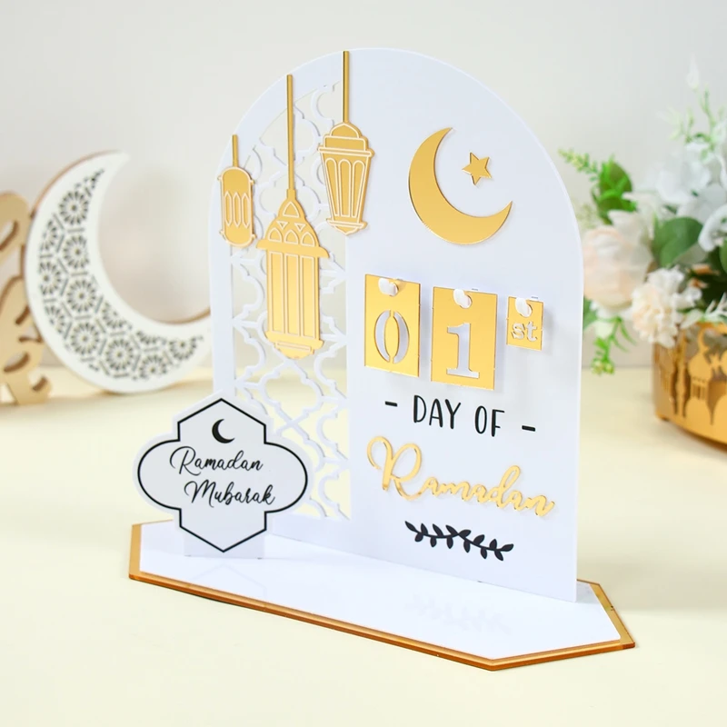 Celebrate the spirit of Eid with this beautifully crafted FENGRISE Acrylic Ramadan Countdown Ornament, designed to bring joy and anticipation to your home. Made from high-quality acrylic, it offers a sleek, modern look that blends effortlessly with any décor style. Whether placed on a shelf, table, or mantle, it becomes a charming focal point that helps you mark each day with meaning and togetherness. Free from high-concern chemicals and produced without electronic components, it provides a simple, elegant way to honor the season.