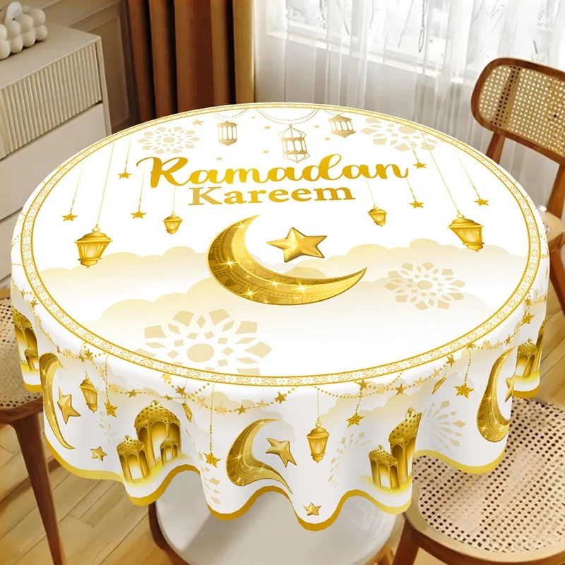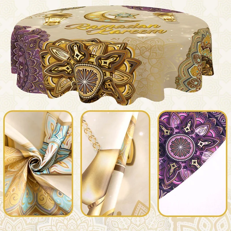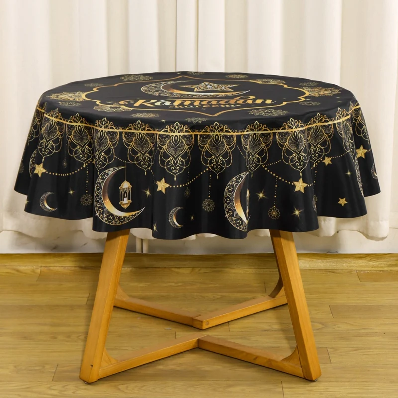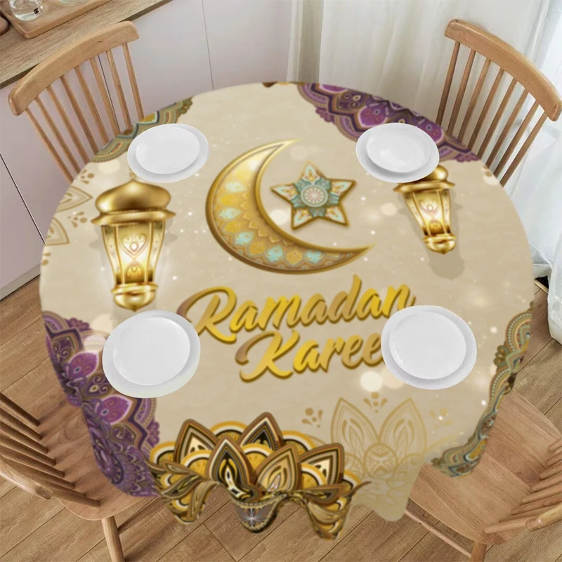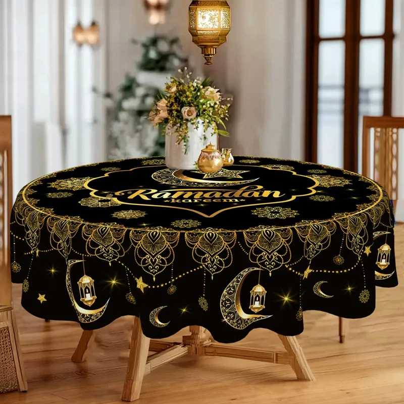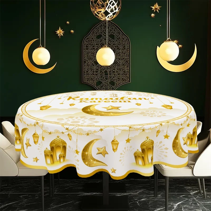 Add a touch of festive elegance to your home with this beautifully designed Ramadan Kareem and Eid Mubarak round tablecloth. Crafted from high-quality polyester, it offers a smooth, durable surface that drapes gracefully over your table, enhancing your décor with warmth and spiritual charm. Perfect for family gatherings, evening iftar meals, and Eid celebrations, this tablecloth sets the tone for a welcoming and joyful atmosphere. Its vibrant detailing and thoughtful craftsmanship make it a standout piece for the holy season.