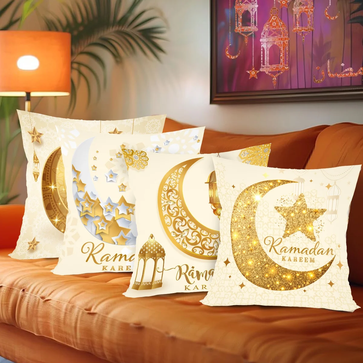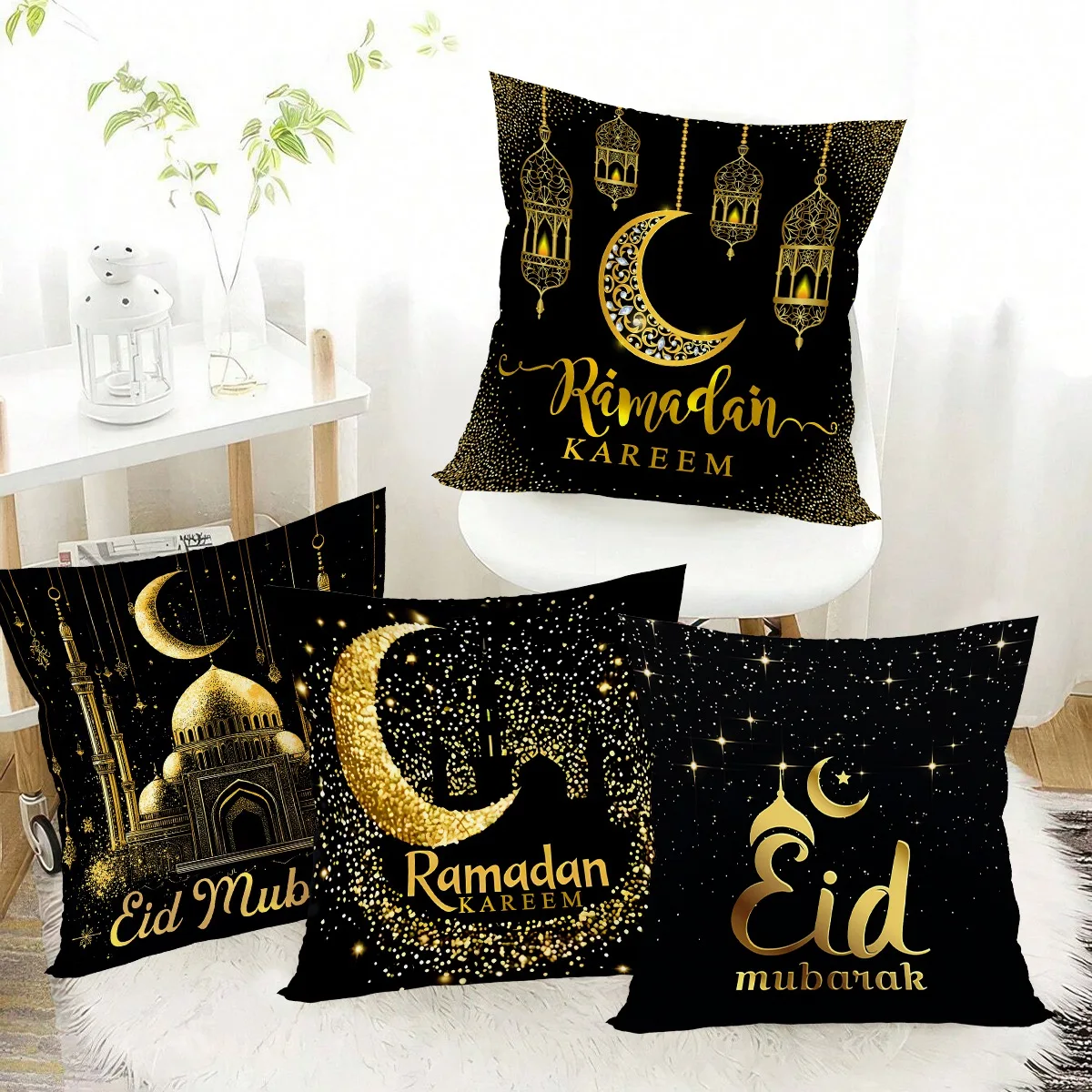 Elevate your home décor for the blessed season with this beautifully crafted 4-piece Ramadan Kareem pillowcase set. Made from soft, durable polyester, each cover features elegant festive designs that bring warmth and spiritual charm to your living space. The high-quality fabric offers a smooth texture and vibrant detailing, making it a perfect addition to sofas, chairs, and lounge areas throughout the Eid celebration. Whether used for family gatherings or as a decorative highlight during nightly prayers, these pillowcases add a touch of tradition and style to your home.